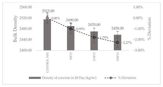 Bulk Density of Concrete Mix and the deviation of mixes from the control mix.
