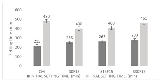 - The initial setting time showed a 30% increase compared to the control mix when seashells were added at a 30% partial replacement, while the final setting time decreased by about 12%. This is mainly due to the porous nature of seashells, which can absorb water and retards the hydration process in the early stage.