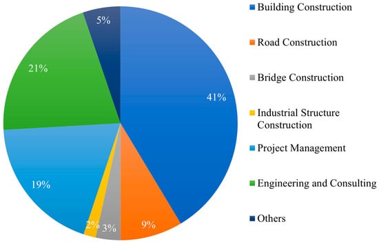 The project type-wise distribution shows that majority of respondents belong to the Building Construction sector (41.4%), indicating a strong representation from this core area of the construction industry. This is followed by professionals in Engineering and Consulting (20.7%) and Project Management (19%), reflecting significant input from technical advisory and managerial roles. Other sectors such as Road Construction (8.6%), Bridge Construction (3.4%), and Industrial Structure Construction (1.7%) have a smaller but relevant presence. The Others category accounts for 5.2%, showing diversity in sectoral backgrounds. Overall, the distribution demonstrates broad coverage across key construction domains. (Figure 4).