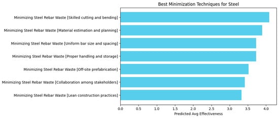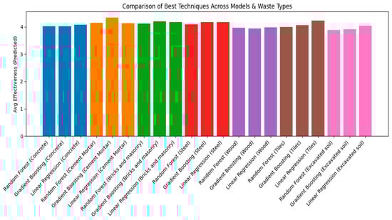 We identified the best minimization technique for each waste type based on predicted importance scores from the model. These predictions were further validated against the average significance scores to ensure alignment between machine learning outputs and survey-based insights. The final ranking offered a data-driven prioritization of techniques to support decision-making in sustainable waste management.