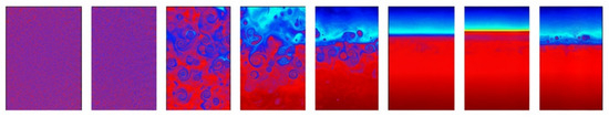 Under high-temperature operating conditions, the lifting force acting on the TSNR phase increases, triggering the migration of polymer particles to the surface, as shown in Figure 7. This separation rate is accelerated by the substantial difference in physical properties, namely density and viscosity, between the polymer phase and the asphalt medium [19,54,72]. On the other hand, chemical interactions between the phases cause mass transfer, in which the swollen TSNR-rich phase absorbs saturated and aromatic fractions. As a result, the residual asphalt phase loses its maltene component, increasing the resin-to-asphaltene ratio [6,29,72,73,74]. This increase in the ratio has a direct impact on material stiffness, as evidenced by a shift in the glass transition temperature (Tg) towards positive values [54,55], thereby increasing the bottom softening point of the asphalt mixture. Overall, only one sample met the 2.2 °C requirement outlined in ASTM D5892: sample CTSNRMA-440, with a value of 0.95 °C.