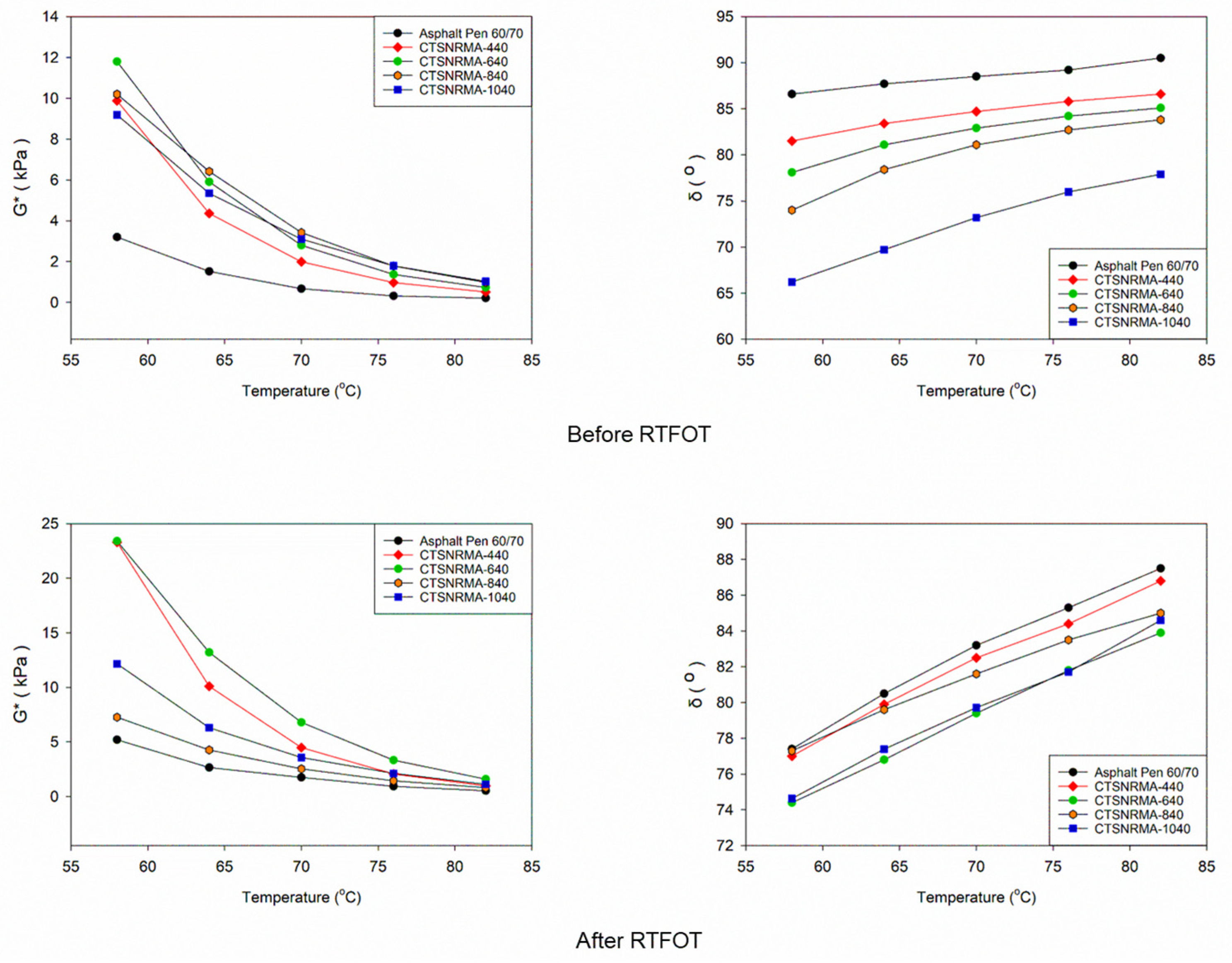 3.1. Performance Evaluation of CTSNR Homogenization Time in Asphalt Matrix