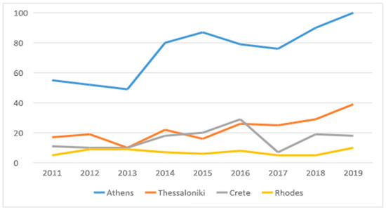 Evolution of four Greek conference cities over time. Source: The authors’ elaboration.