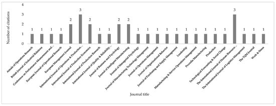 Furthermore, the analysis of the leading journals in terms of published contributions reported as in Figure 4 shows that six of the twenty-five journals account for fourteen of the total thirty-three articles, i.e., roughly one in two articles in the PB. In particular, International Journal of Operations and Production Management and The International Journal of Human Resource Management constitute the representative sample in terms of the pool formed by the journals in which the articles can be found. The research areas in which the reviewed articles were published are typically operations management and human resource management. The last consideration allows us to underline how the journals of high relevance in the OM and SCM field are giving more and more space to topics such as the one examined (e.g., Procedia Manufacturing, Journal of Operations Management).