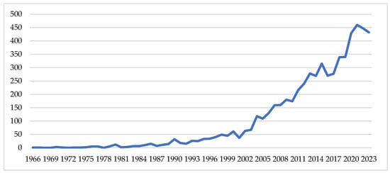 This study will use bibliometric analysis to identify potential areas needing further research exploration. Bibliometric analysis, as a quantitative research method, provides an objective overview of productivity and influence within a particular field by examining a large corpus of academic literature (). This type of analysis can reveal patterns through the study of intellectual, social, and conceptual structures (). By doing so, it uncovers the emergence and development of specific areas of study through an examination of contributions from scholars, institutions, and journals (). Moreover, bibliometric analysis, combined with science mapping, helps scholars to reveal patterns, trends, and connections in the research literature while analyzing the temporal trends and dynamics of the research area over time ().
