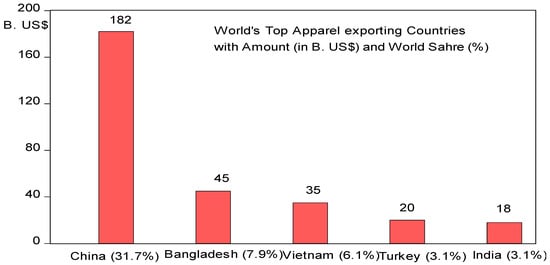 Figure 2 shows that the topmost of these countries is China, with the largest market share, followed by Bangladesh with the second largest, and Vietnam with the third largest.