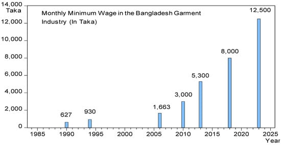 PressXpress, 2024). In 2023, the government raised the minimum wage further by 56.25% from BDT 8000 in 2018 to BDT 12,500 in 2023 (about USD 115 at BDT 119 to USD exchange rate at that time) (