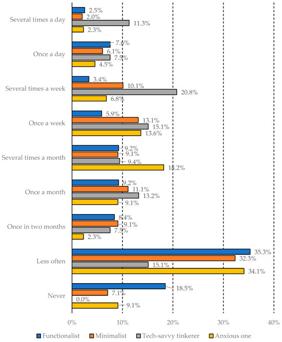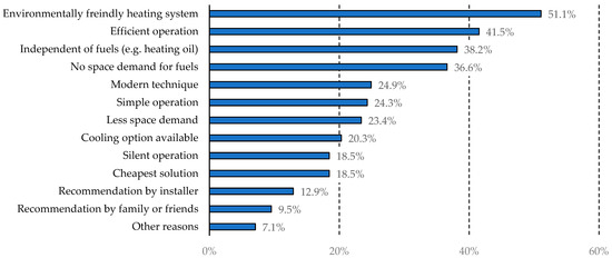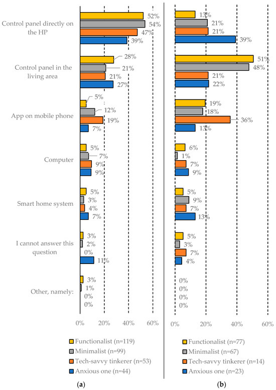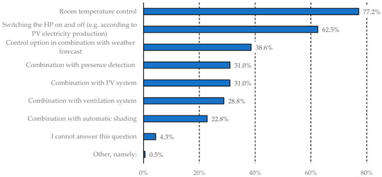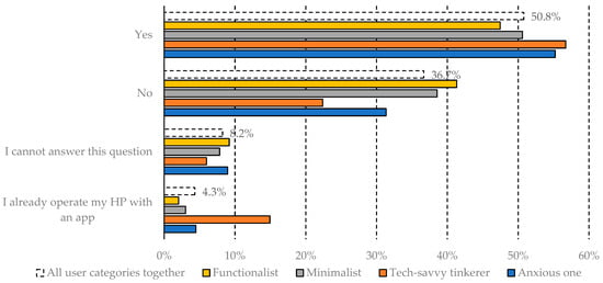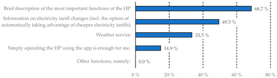 In conclusion, it can be stated that the study enabled a comprehensive analysis of current and future HP users in Austria. Through the characterization and specific analysis of the different user types, tailor-made system solutions can be developed, user friendliness can be optimized, and new services and marketing strategies can be developed. HP manufacturers can use the results to derive their own strategies for product and service development. It can be assumed that digital services, i.e., apps, historical data access, remote monitoring, and optimization, as well as smart home concepts, i.e., holistic energy and building management concepts with intelligent control and regulation approaches, will become increasingly relevant and in demand in the future. However, the study also shows that there is a clear need for information regarding the benefits and advantages of these services and concepts and that concerns and reservations, i.e., internet connection and external data access options, may also need to be considered and overcome.