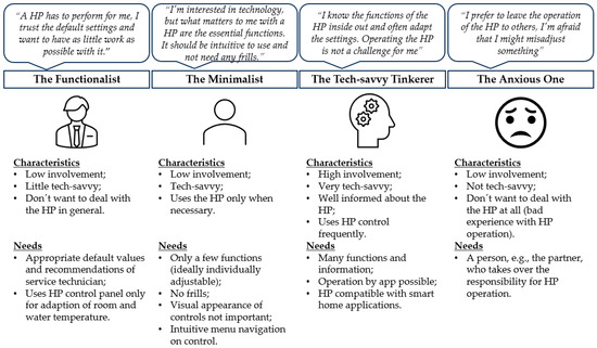 However, Austria was not included in this study. Furthermore, user behavior in terms of typical operating habits and expectations regarding control and regulation strategies were not part of this study. In conclusion, scientific studies that focus on the requirements and expectations of Austrian users, especially with a strong focus on operating habits and expectations regarding control and regulation strategies, are currently scarce or unknown to the authors. Similarly, the potential existence of different types of users with different expectations and requirements for HPs are not known for Austria.