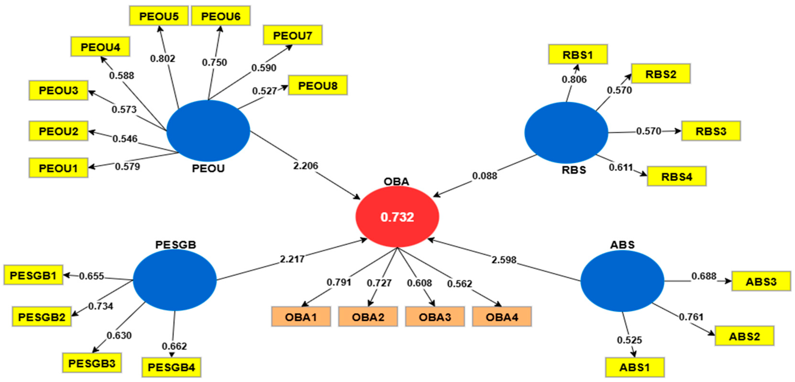 | H2 | PEOU → OBA | 2.206 *** | Supported |