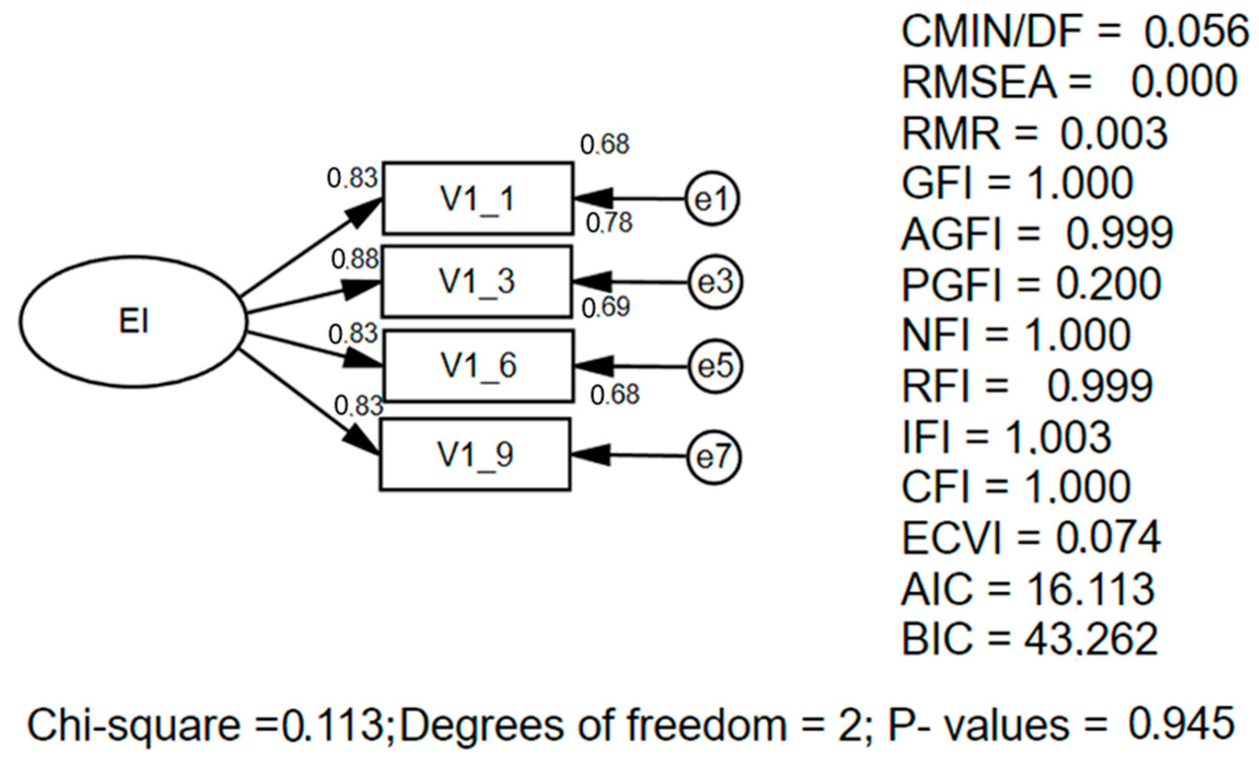 | Using emotions beneficially (Mayer & Salovey, 1997; Grunes et al., 2014) | Easy adaptation to the work environment (V1_5) | 0.255 | 0.892 | 0.860 | 3.78 | 4.00 | 4.00 |
