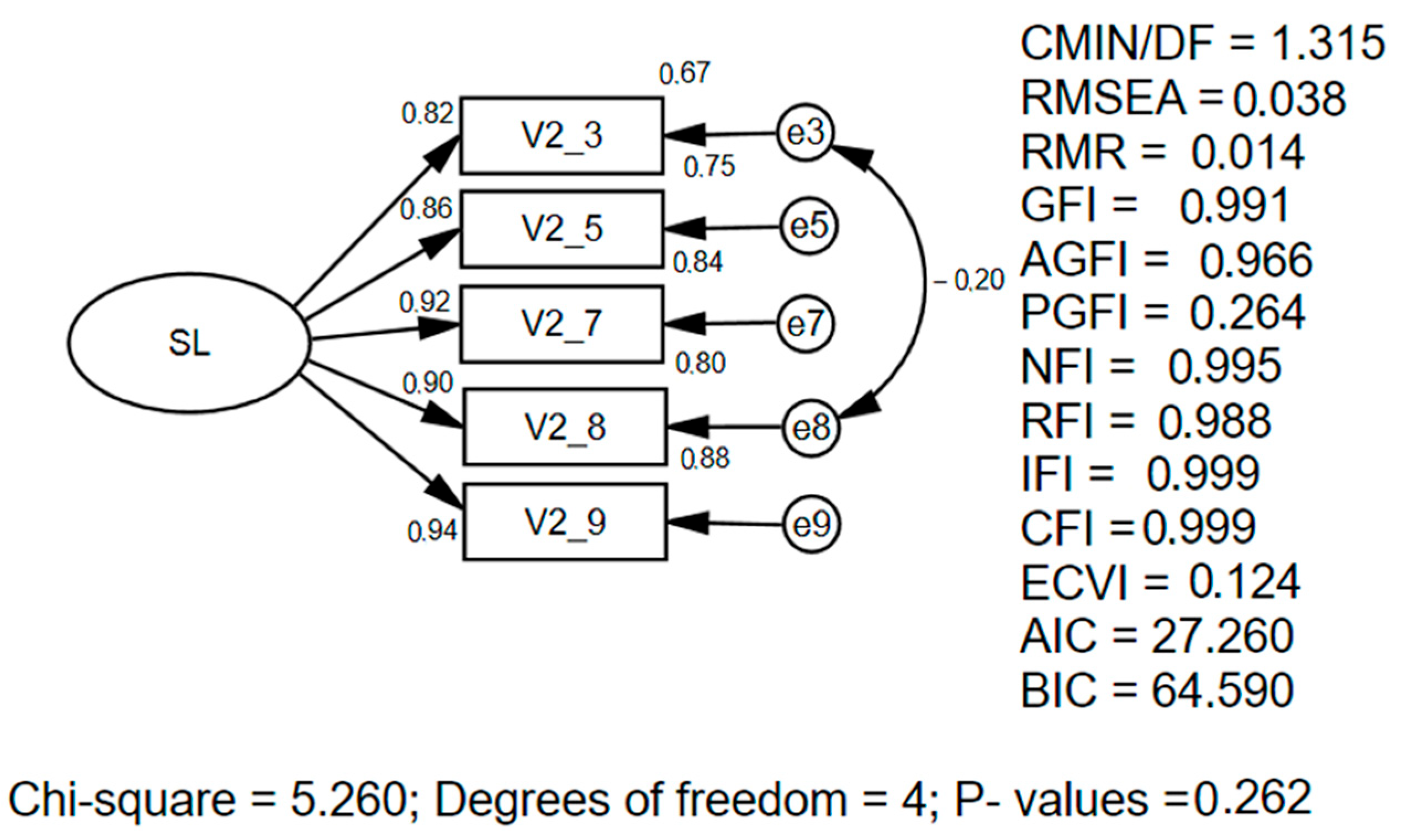 | Discriminant validity | Not Achieved | Achieved | Not Achieved | Achieved | Not Achieved | Achieved | Low value of Modification Indices and Unidimensionality of the variables (Cheung et al., 2023; Brown, 2014; Zainudin, 2012) |