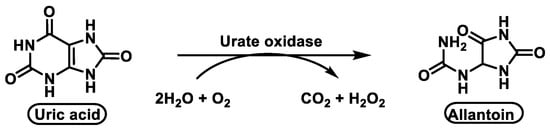 - Wu, X.W.; Lee, C.C.; Muzny, D.M.; Caskey, C.T. Urate oxidase: Primary structure and evolutionary implications. Proc. Natl. Acad. Sci. USA 1989, 86, 9412–9416. [Google Scholar] [CrossRef] [Green Version]