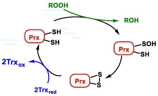 - Hall, A.; Nelson, K.; Poole, L.B.; Karplus, P.A. Structure-based Insights into the Catalytic Power and Conformational Dexterity of Peroxiredoxins. Antioxid. Redox Signal. 2010, 15, 795–815. [Google Scholar] [CrossRef] [Green Version]