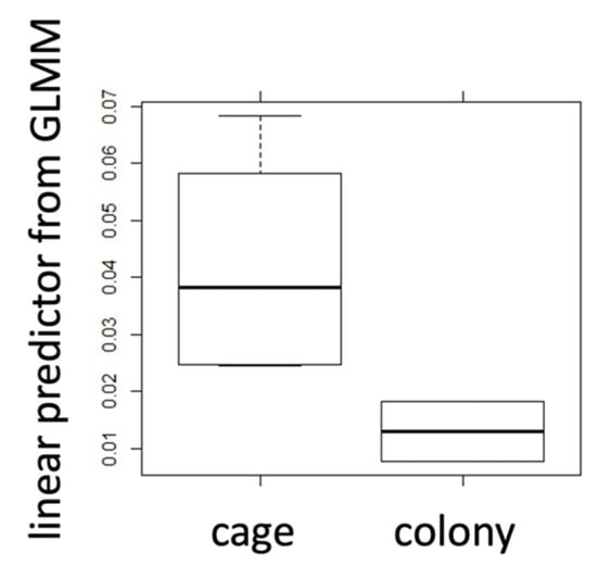 The following supporting information can be downloaded at: https://www.mdpi.com/article/10.3390/stresses2040026/s1, Table S1. GLMM null and full model for positive controls, Table S2. GLMM null and full model for cages with varying group size, Table S3. GLMM null and full model for cage vs. colony, Table S4. Welch t-test for positive controls and cage vs. colony, Table S5. Samples and sample sizes for different experiments.