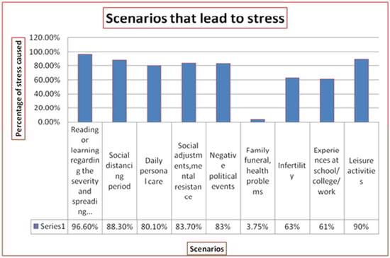 Stress is referred to as the non-peculiar response of the body to danger or unexpected events as well as the ability to trigger various stimuli [156]. Stress may be due to sexual attitude, marital life, quality of life, work life, motherhood, social tension, etc. Any of these may have a detrimental influence on sperm quality. The recent scenarios that may lead to stress are illustrated in Figure 2 [157]. Stress may not have a great impact on sperm morphology, but it has a 39% reduction in sperm quantity and a 48% reduction in motility. Thus it is indicated that stress is negatively associated with semen quality [150,152].
