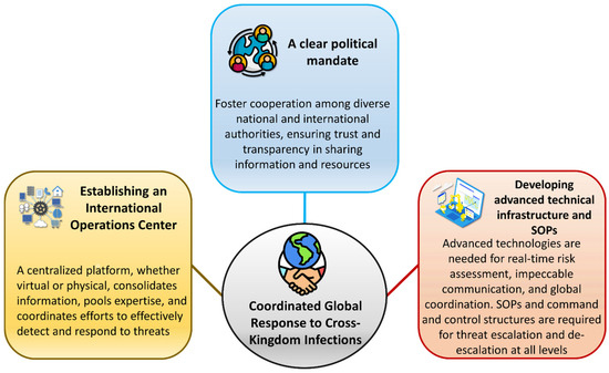The consequences of cross-kingdom infections extend beyond individual cases, with potential implications for both public health and the environment. Outbreaks of such infections in humans or animals can burden healthcare systems substantially, particularly when they involve pathogens resistant to conventional treatments. Additionally, these infections raise concerns regarding biosecurity and pathogen evolution, as genetic exchanges between plant, animal, and human pathogens could give rise to novel, more virulent strains. For example, the co-infection of humans or animals with plant pathogens could lead to the horizontal transfer of resistance genes, resulting in more resilient pathogens that complicate treatment options.