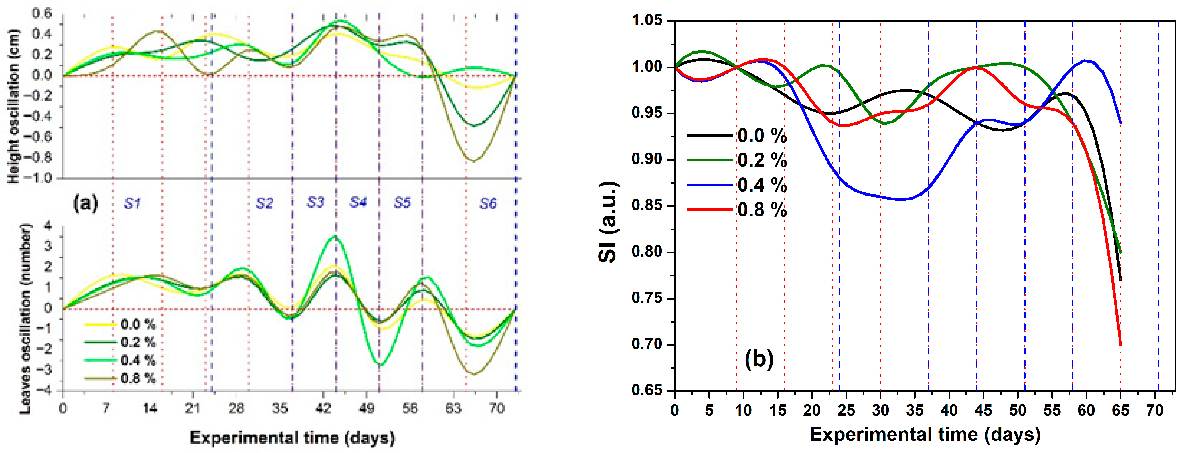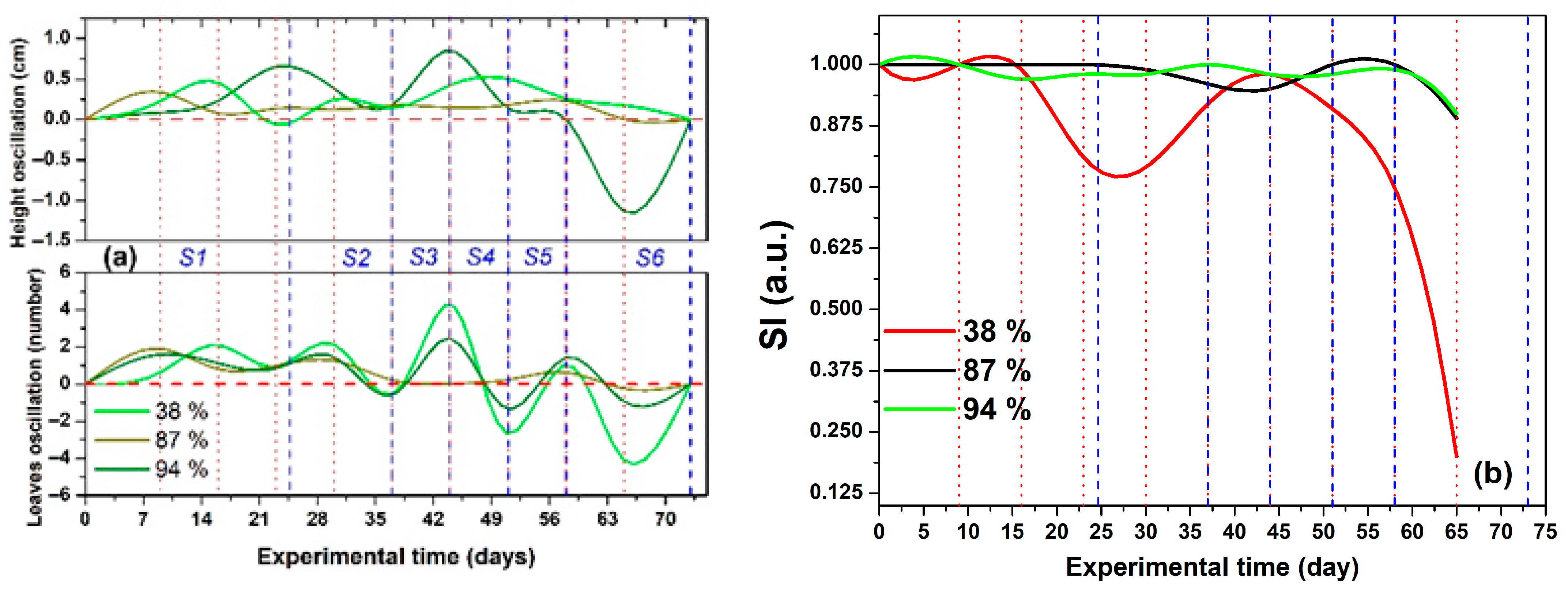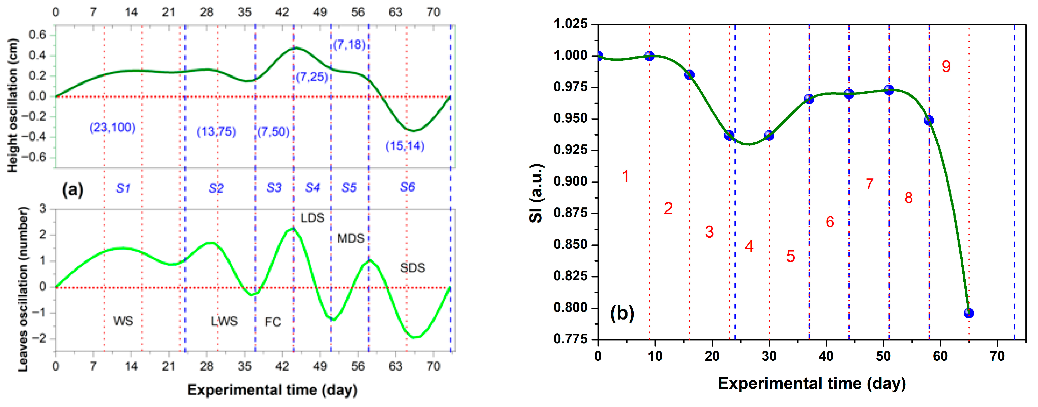 - S3 as a transition stage (FC): at this stage, plant growth in terms of height and leaf number peaked, leading to the highest general values for both SI and .