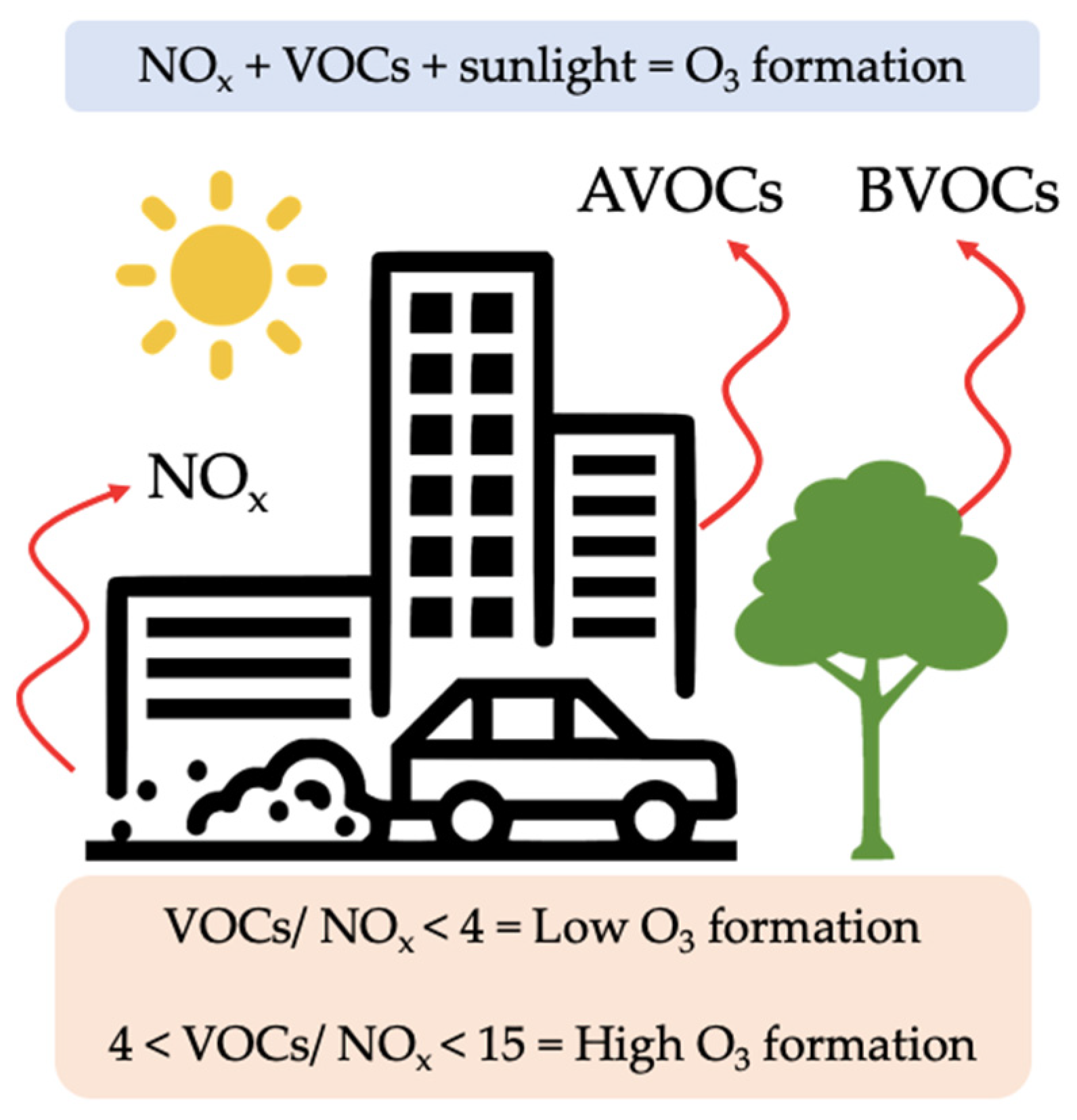 | Incorporate into pollutant emission reduction policies. | Balances the effects of BVOC and NOx on O3 formation. |