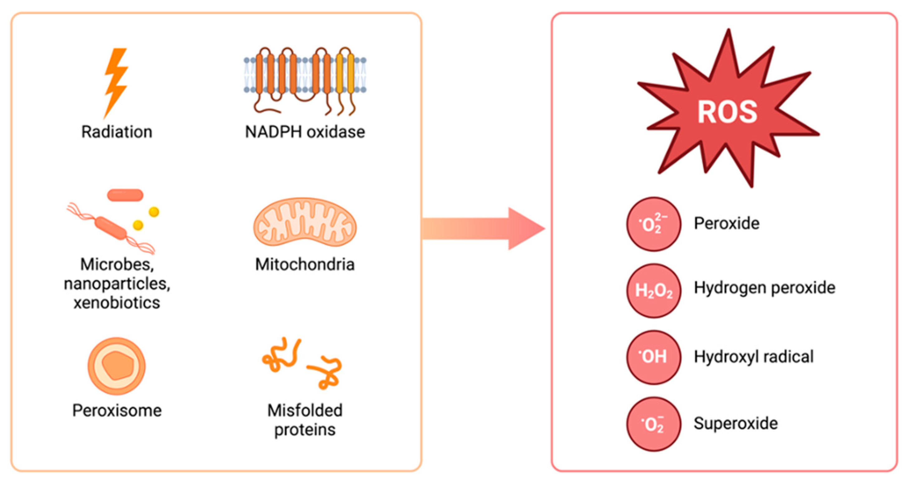- Bardaweel, S.K.; Gul, M.; Alzweiri, M.; Ishaqat, A.; ALSalamat, H.A.; Bashatwah, R.M. Reactive Oxygen Species: The Dual Role in Physiological and Pathological Conditions of the Human Body. Eurasian J. Med. 2018, 50, 193–201. [Google Scholar] [CrossRef] [PubMed]