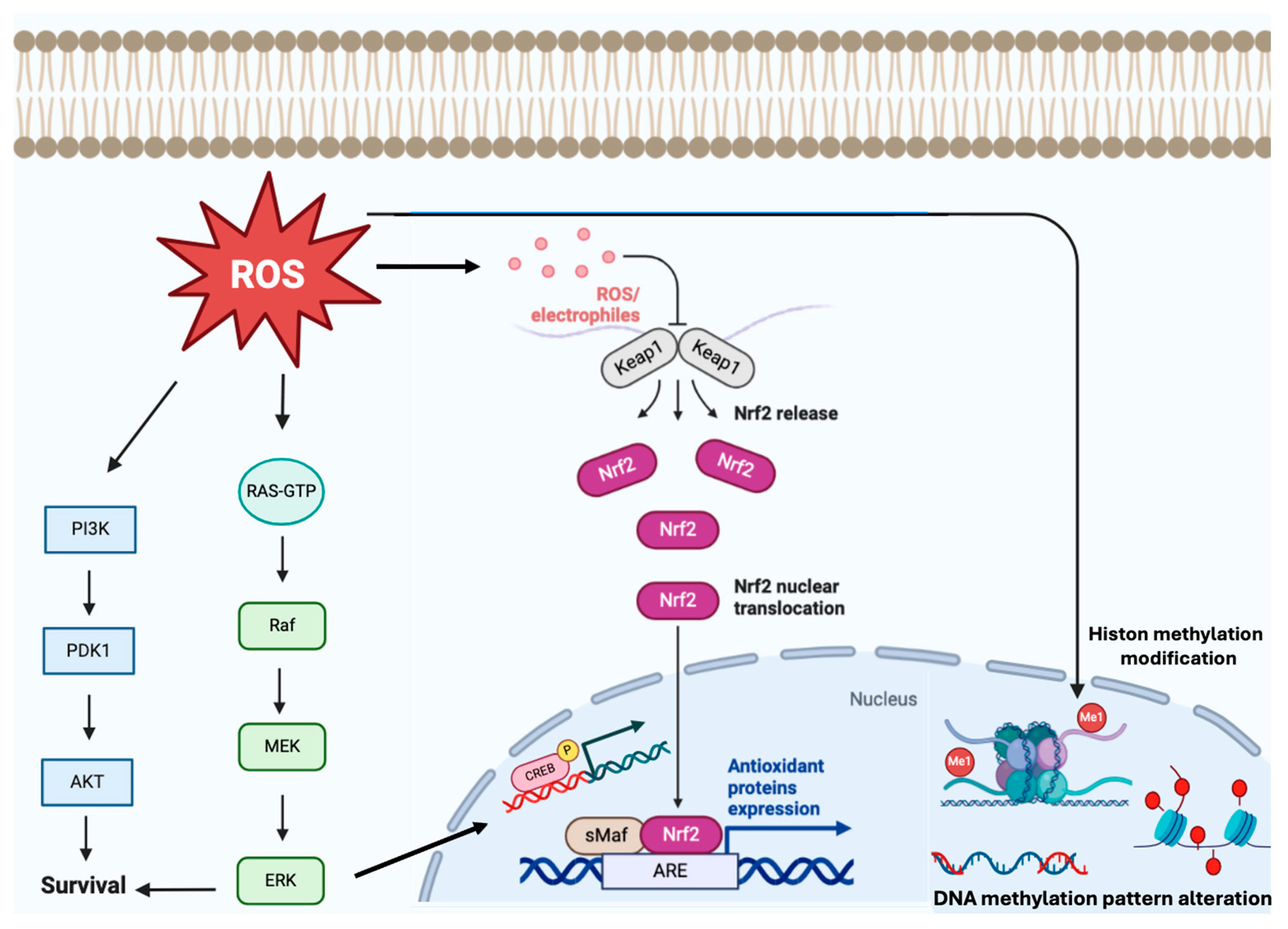 - Periyasamy, L.; Krishnan, A.; Palanichami, M.K.; Ramachandran, I.; Kumaran, R.I.; Behlen, J.; Stanley, J.A.; Muthusami, S. Reactive Oxygen Species: Induced Epigenetic Modification in the Expression Pattern of Oncogenic Proteins. In Handbook of Oxidative Stress in Cancer: Therapeutic Aspects; Chakraborti, S., Ed.; Springer Nature: Singapore, 2022; pp. 1357–1372. ISBN 978-981-16-5422-0. [Google Scholar]