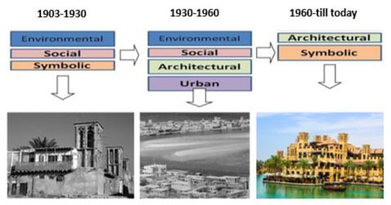 In the field of heritage, interpretation plays a role in redefining global debates regarding the past and present. The key here is the evolving process of attributes of meaning that cultural objects are associated with and their capability to adapt under new situations. The level of adaptation depends on their cultural significance and resilience to transformations in meaning over time. This capability is a strong tool to sustain the cultural identity of the nation. The dynamic adaptation of the wind tower happens after it becomes a key element in defining the urban character of Dubai’s historic areas. The wind tower, as an architectural element, shows uniqueness in becoming an essential component in the silhouette and urban morphology of the historic district. Dynamic adaptation, filtration, and evolution are ongoing processes that enable cultural objects, such as wind towers, to have an influence on shaping the future built environment and to integrate old as well as new facets to create meaning for the new environment that has heritage associations.