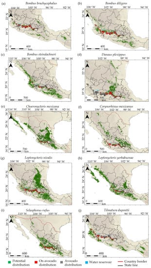 - Gómez-Ruiz, E.P.; Lacher, T.E. Modelling the potential geographic distribution of an endangered pollination corridor in Mexico and the United States. Divers. Distrib. 2017, 23, 67–78. [Google Scholar] [CrossRef]