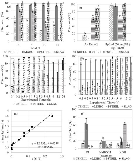 Chicago/Turabian StyleHolly, Michael A., Joseph R. Sanford, Patrick S. Forsythe, Marcia R. Silva, Daniel D. Lakich, Camryn K. Swan, and Keenan A. Leonard. 2022. "Common Buckthorn Engineered Biochar (Rhamnus Cathartica), Calcined Quagga Mussel Shells (Dreissena Rostriformis), Pickled Steel, and Steel Slag as Filter Media for the Sorption of Phosphorus from Agricultural Runoff" Conservation 2, no. 4: 726-738. https://doi.org/10.3390/conservation2040047