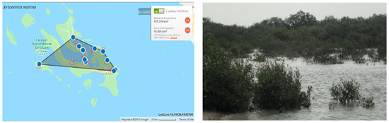 Geographical distribution of Avicenna marina in the Farasan Archipelago (plant photo by R. Al-Qthanin from Faranan Alkabir Island).