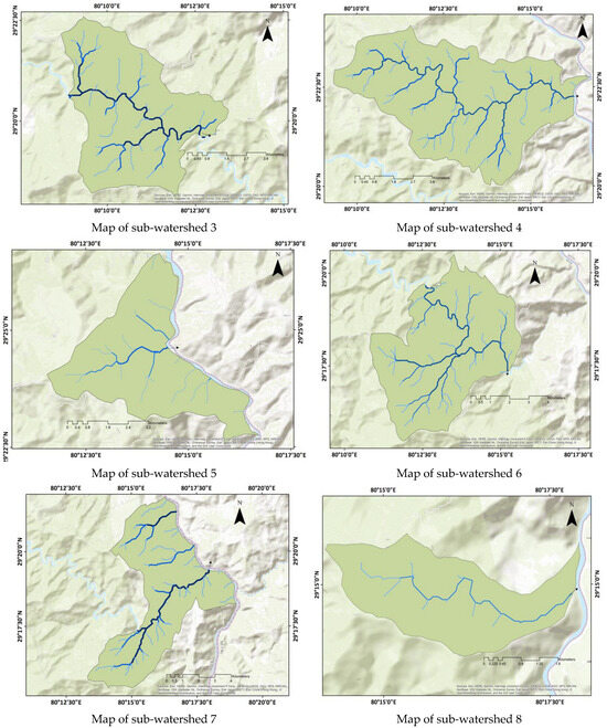 Sustainable development places the utmost importance on actively planning and efficiently maintaining natural resources. To manage land and water resources effectively, drainage basins, catchments, and sub-catchments should be incorporated as fundamental units [26]. Moreover, the conservation and judicious use of all relevant resources are prioritised by watershed management in order to maximise output while minimising environmental effects [27]. The effective management of watersheds can help mitigate the impact of natural disasters, such as floods and droughts, and it addresses issues like excessive runoff, increased soil erosion, and insufficient infiltration [28]. Unfortunately, many mountain watersheds face catastrophic situations due to human activities, such as deforestation, urbanisation, shifting cultivation, and other land uses that do not support sustainability. Thorough management plans are required to develop these watersheds sustainably by implementing effective strategies for resource conservation, pollution control, ecosystem restoration, and community engagement.