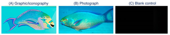 Additional visuals of (A) a graphic/iconography, (B) a photograph, and (C) a blank control for the direct comparison in Experiment 2.