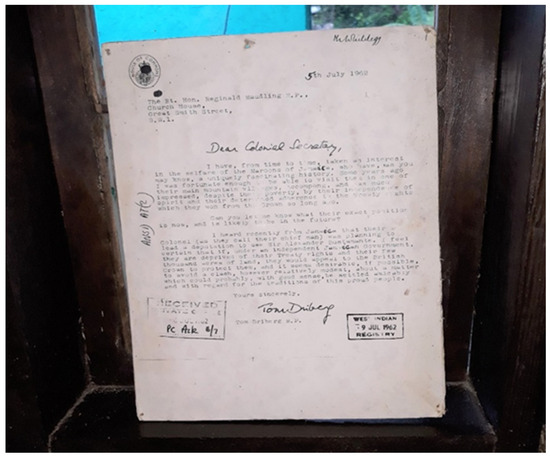 Letter dated 5 July 1962 from Tom Driberg (British Minister of Parliament) to Reginald Maudling (Secretary of State for the Colonies) seeking clarification on the rights of the Maroons prior to Jamaica’s Independence on 6 August 1962. (© Jones Collection).