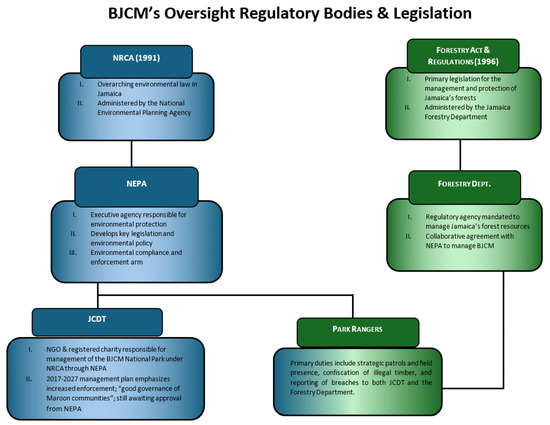 State bodies with regulatory oversight of the Blue and John Crow Mountains (BJCMs).
