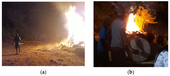 (a,b) Maroon fires during a religious Myal ceremony in the Blue Mountains, Jamaica. (© Jones Collection).