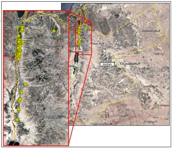 The Barn Owl project was established in Jordan in December 2002 [51,52]. The leading group to initiate the project was the Amman Center for Peace and Development (ACPD). Nest boxes were installed progressively on the basis of one box per 30 acres to cover a 135 km length along the Jordan Valley. A total of 250 nest boxes have been installed so far in Jordan, out of which 176 are installed in the northern part of Jordan Valley and 46 in the southern part, whereas 30 more are now installed to upland farms of the Jerash area (Figure 3).