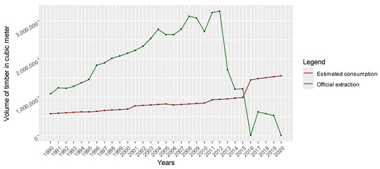 Due to neoliberal market liberalization after the 1990s, Myanmar ranked among the top ten most deforested countries in the world [51,52]. The neoliberalization of Myanmar’s timber industry led to logging beyond the limits set by the Myanma Selection System’s annual allowable cut, resulting in a sharp decline in natural forest timber supply. From 2019 onward, the establishment of community forest-based enterprises (CFEs) and the deregulation of timber extraction rights enabled CFEs to officially produce wood products [16]. Additionally, private plantations began supplying timber through thinning, although most trees remain immature. However, the volume of wood products recently produced by CFEs and private plantations remains small, and the relevant data are largely inaccessible. A major challenge for the timber industry is the potential risk of illegal timber being mixed with legal timber within local distribution channels, as well as in storage and processing facilities (RWP 17).
