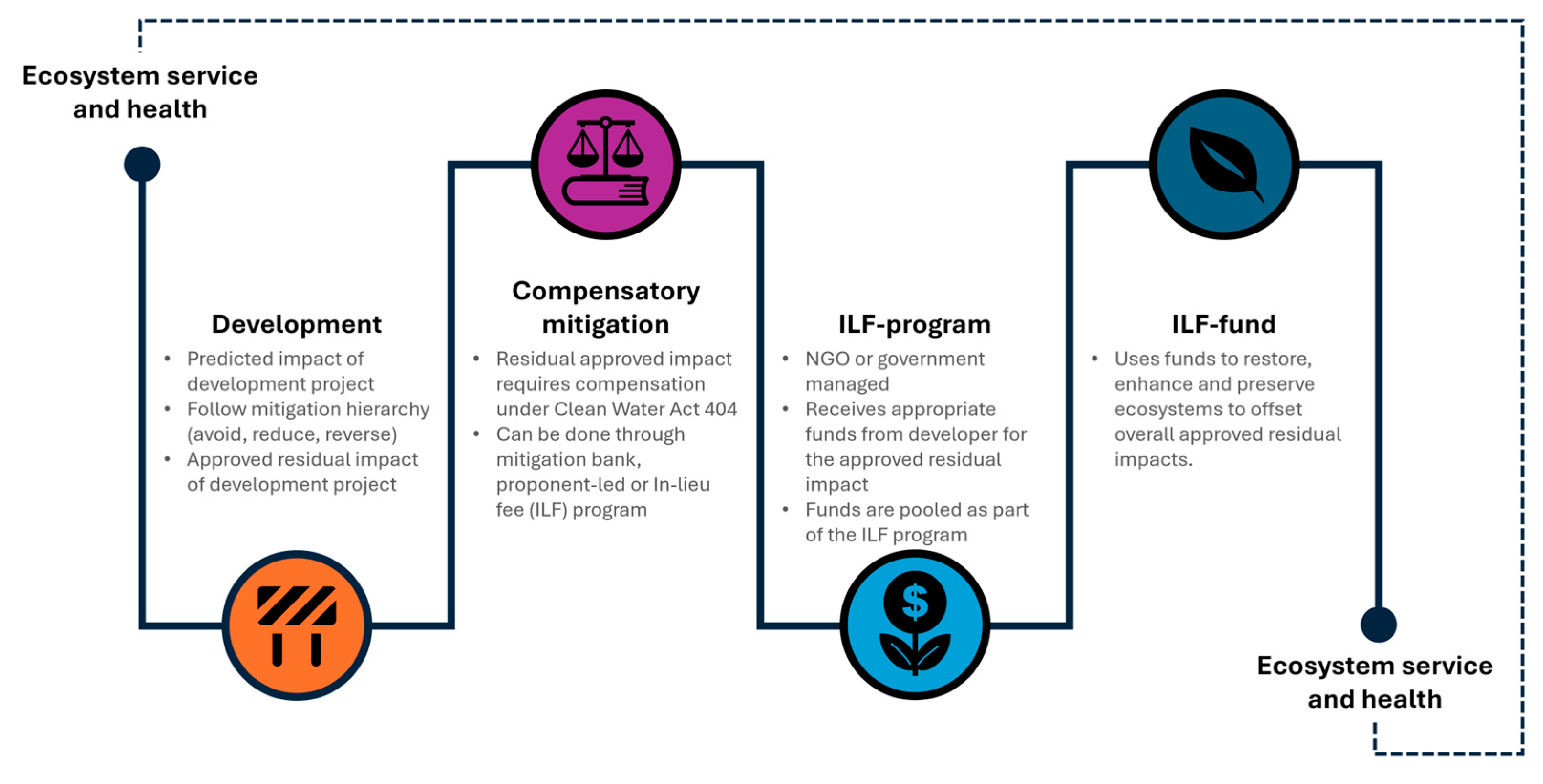 | Target ecosystem/credit type | Specifies the ecosystem or type of credit targeted by the ILF program, such as wetland or stream, and sub-types (wetland-general, wetland-tidal, wetland-seagrass, stream). |