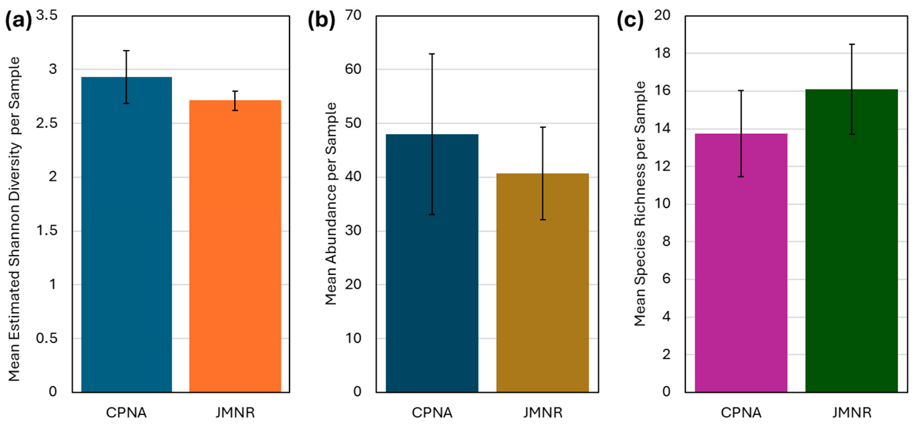 - Chao, A.; Henderson, P.A.; Chiu, C.H.; Moyes, F.; Hu, K.H.; Dornelas, M.; Magurran, A.E. Measuring Temporal Change in Alpha Diversity: A Framework Integrating Taxonomic, Phylogenetic and Functional Diversity and the iNEXT.3D Standardization. Methods Ecol. Evol. 2021, 12, 1926–1940. [Google Scholar] [CrossRef]