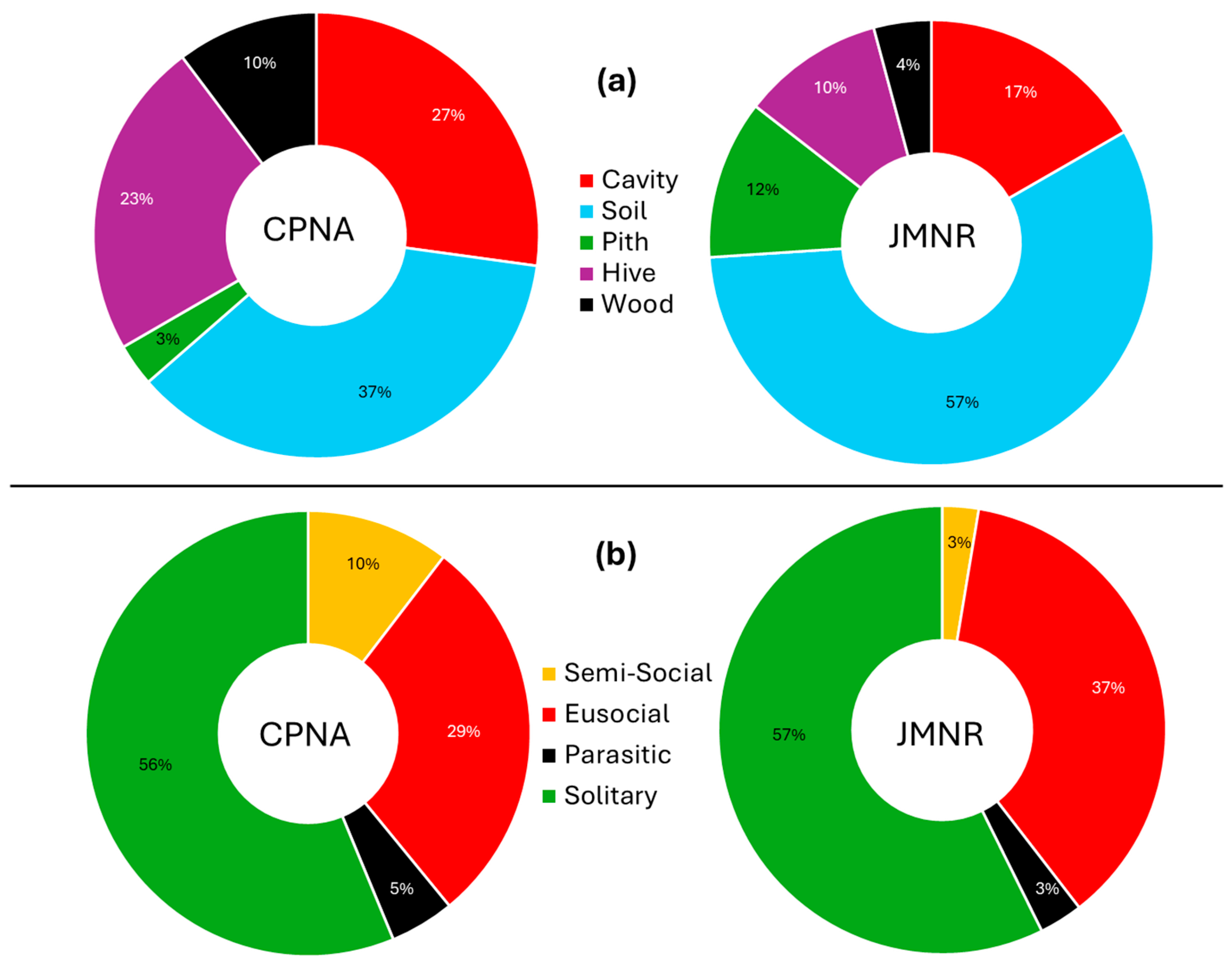| Family | Genus | Species | CPNA | JMNR | Nest | Plant | Behavior |