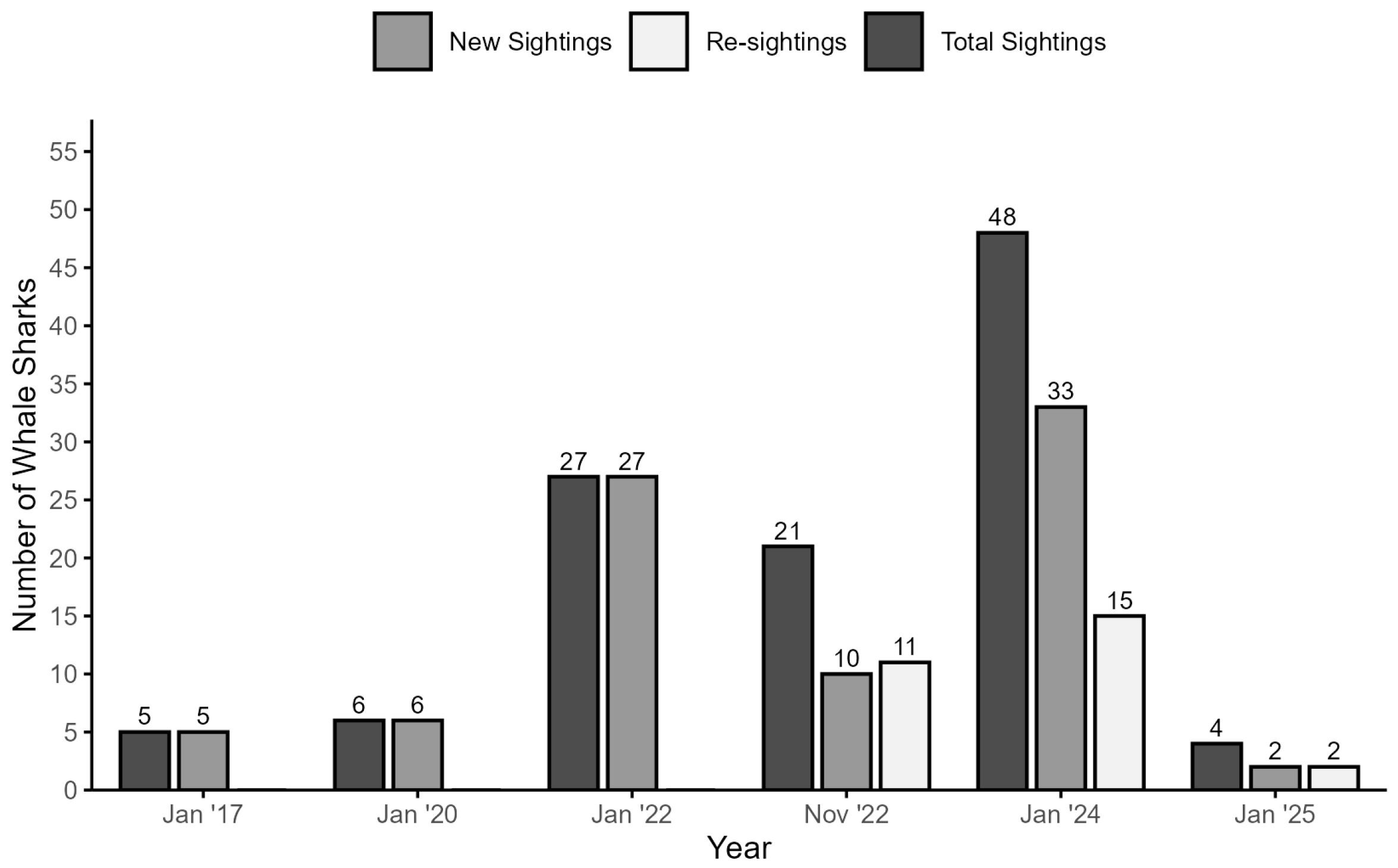 APA StyleReinero, F. R., Marsella, A., Vitale, G., Pacifico, A., Mahrer, M., & Micarelli, P. (2025). Environmental Drivers of Immature Whale Shark Surface Sightings in the Gulf of Tadjoura, Djibouti. Conservation, 5(4), 68. https://doi.org/10.3390/conservation5040068