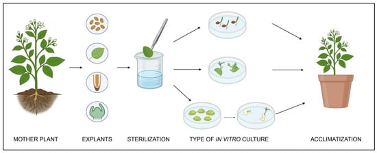 - Rai, M.K. Plant tissue culture targeting germplasm conservation. In Advances in Plant Tissue Culture: Current Developments and Future Trends; Rai, A.C., Kumar, A., Modi, A., Singh, M., Eds.; Academic Press: London, UK, 2022; pp. 205–221. [Google Scholar]