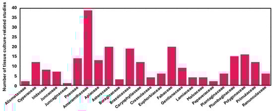 Number of experimental publications related to tissue culture research by family.