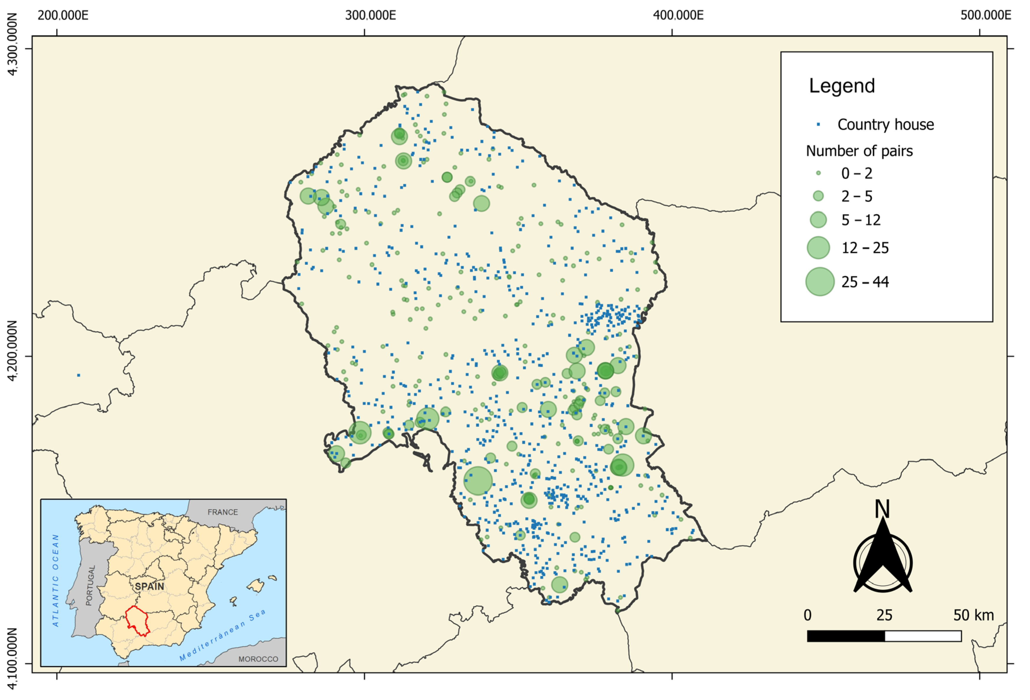 | Anthropogenic | Distance to the nearest country house 1 | |