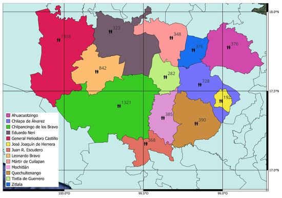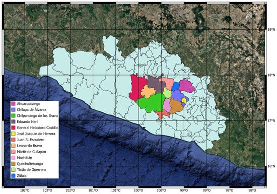 The study was conducted in the central region of the state of Guerrero, Mexico, comprising 13 municipalities, Figure 1.