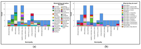 Occupation of beneficiaries: (a) Before joining the SVP; (b) while participating in the SVP.
