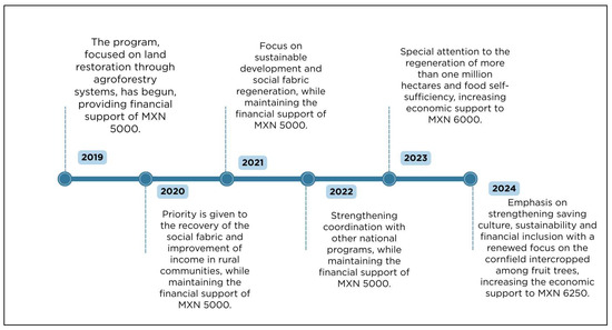 - Diario Oficial de la Federación ACUERDO Por El Que Se Emiten Los Lineamientos de Operación Del Programa Sembrando Vida. Available online: https://www.dof.gob.mx/nota_detalle.php?codigo=5548785&fecha=24/01/2019#gsc.tab=0 (accessed on 25 July 2024).