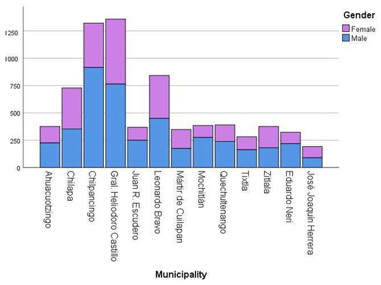 The registry of 7289 SVP beneficiaries in the study region was reviewed [29] through a geographic distribution by municipality, Figure 3.