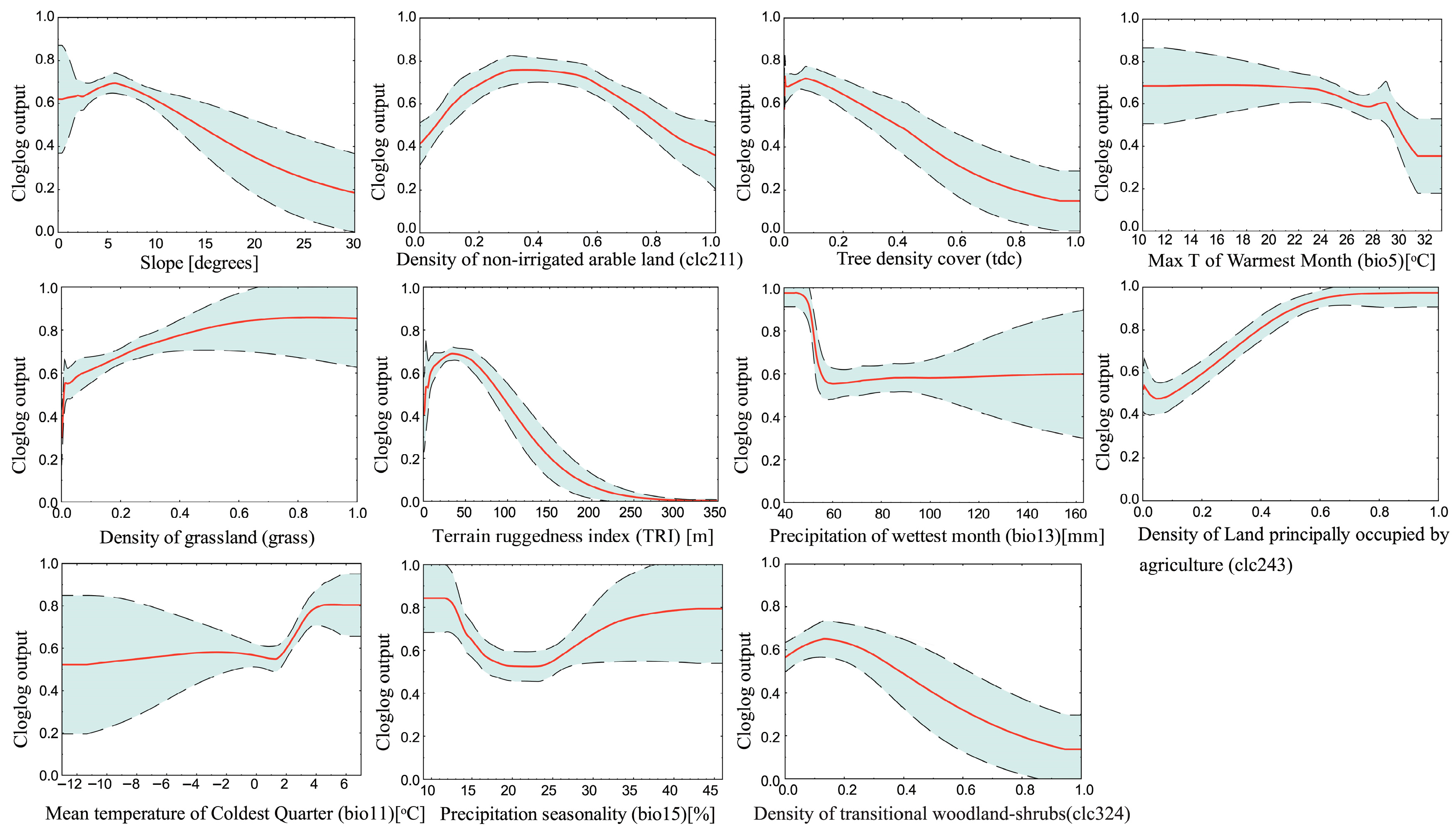 - Phillips, S.J.; Anderson, R.P.; Dudík, M.; Schapire, R.E.; Blair, M.E. Opening the black box: An open-source release of Maxent. Ecography 2017, 40, 887–893. [Google Scholar] [CrossRef]