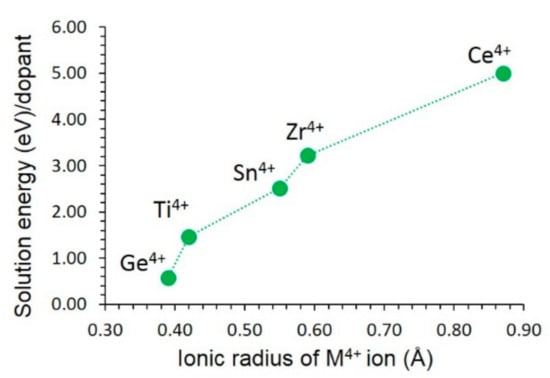- Grimes, R.W.; Busker, G.; McCoy, M.A.; Chroneos, A.; Kilner, J.A.; Chen, S.-P. The Effect of Ion Size on Solution Mechanism and Defect Cluster Geometry. Ber. Bunsenges. Phys. Chem. 1997, 101, 1204–1210. [Google Scholar] [CrossRef]