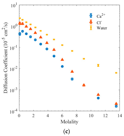 - Hall, J.R.; Wishaw, B.F.; Stokes, R.H. The Diffusion Coefficients of Calcium Chloride and Ammonium Chloride in Concentrated Aqueous Solutions at 25°. J. Am. Chem. Soc. 1953, 75, 1556–1560. [Google Scholar] [CrossRef]